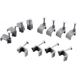 These grey 2.5mm twin and earth cable clips come in a pack of 50pcs, and are ideal for the fast installation of cables. Made from impact resistant UV stabilised polypropylene with integrated hardened zinc coated safety nails, these clips are suitable for use on wood, masonry and compressed board, and can withstand high impact together with extremes of heat, cold and acid.