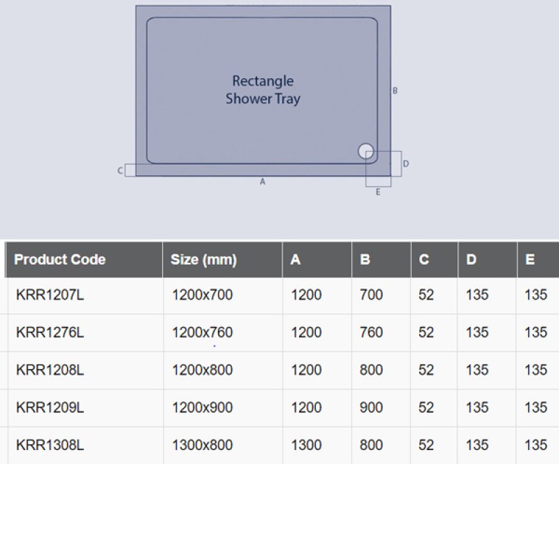 Rectangular Shower Tray 1200mm x 800mm Stone Resin