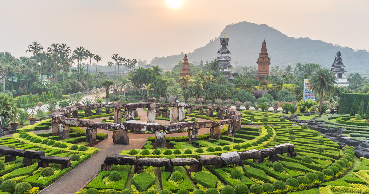 This 500-acre botanical garden in Thailand beautifully blends tropical gardens in with classical French and Roman garden designs creating a colourful and intricate pattern of gardens. Strange sculptures span the terrain, like the Umbrella and butterfly Garden. The climate allows for tropical themes including the cactus and pineapple gardens, all making for an evocative experience.