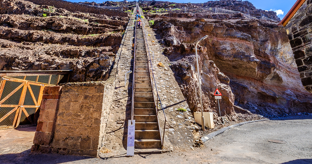 You wouldn't want to be faint of heights when facing this steep decline. Jamestown is the capital of the island of Saint Helena in the South Atlantic Ocean and as it's built on igneous rock, in a narrow divide, and surrounded by steep cliffs, it's rather difficult to negotiate. Jacob's Ladder is a famous set of dangerously steep steps into the town and now is a tourist attraction. The stairs are lit at night and a timed run takes place each year.