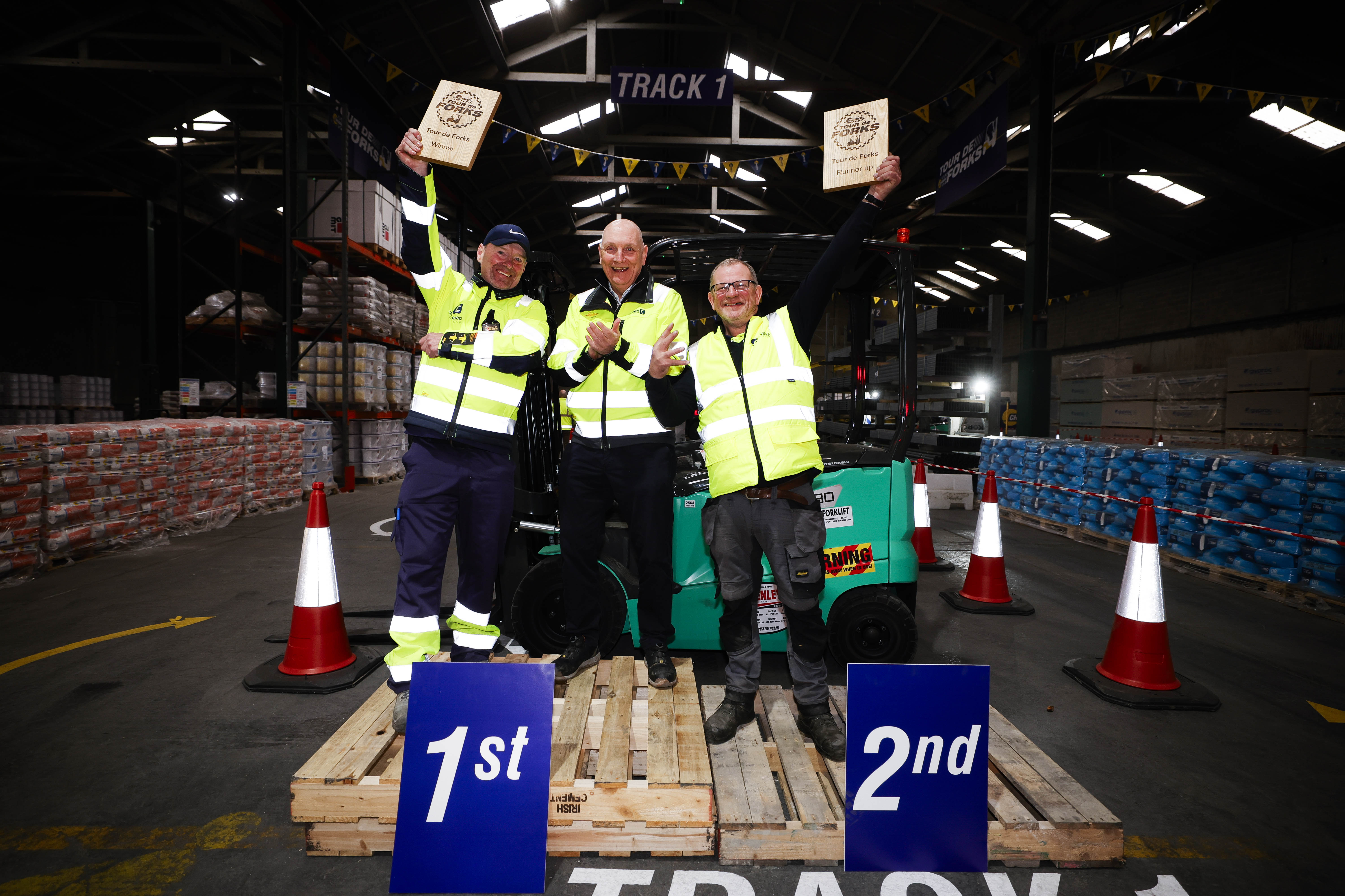 Chadwicks Group, Ireland’s leading builders’ merchants, has announced that James Kearns from Chadwicks Coolock has won its first ever forklift skills competition, Tour de Forks. A first of its kind for Chadwicks Group, Tour de Forks consists of a series of diverse challenges that puts the skills of forklift operators who work at Chadwicks, The Panelling Centre and Cork Builders Providers to the test. On Friday, after a hard-fought contest, James emerged victorious, taking home a prize of €500 for his efforts, while runner-up Gordon Parker from Chadwicks Monaghan received a prize of €250.