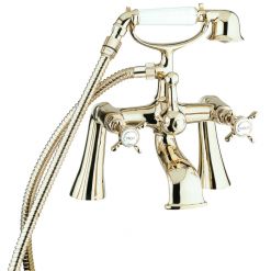 - Classic Edwardian style basin taps with durable polished gold finish for a timeless look