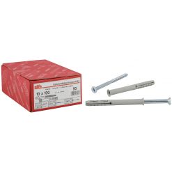 Nylon plug zinc passivated screw. Suitable for concrete hollow block sand-lime brick lightweight block etc. Nylon expansion frame fixing. Push-through installation.