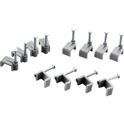 These grey 1.5mm twin and earth cable clips come in a pack of 50pcs, and are ideal for the fast installation of cables. Made from impact resistant UV stabilised polypropylene with integrated hardened zinc coated safety nails, these clips are suitable for use on wood, masonry and compressed board, and can withstand high impact together with extremes of heat, cold and acid.