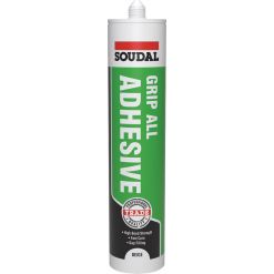 Grip all solvent free is a high performance, fast curing, gap filling grab adhesive. The high strength construction adhesive has good initial grab in both vertical and horizontal positions. Excellent adhesion to most building surfaces including wood, metals, most plastics, glass, concrete, ceramics, plasterboard and polystyrene. Dries white. Overpaintable.
