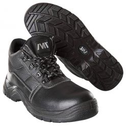 Lace fastening. Steel toe cap. Kevlar® nail protection. Outer sole of black PU/PU. Insoles are anti-static. Sole is oil and petrol resistant. Heat resistant sole up to 140°C. Ladder grip. Bootleg in water-repellent and breathable material. Heel cap. Folded tongue prevents the ingress of dirt.
