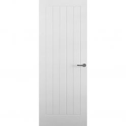 The Indoors Savannah 5 Panel Vertical Textured Primed (FD30) Door incorporates intricate vertical lines in a panel moulded design.