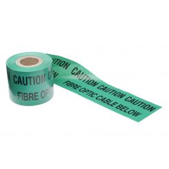 Non-adhesive coloured polythene marker tape with a printed warning message for marking underground buried services.